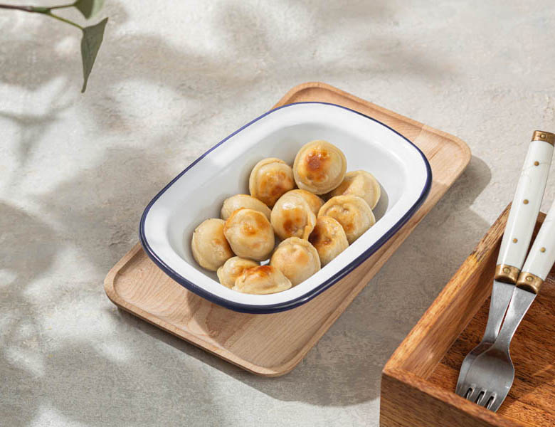 Классические пельмени, обжаренные во фритюре.
